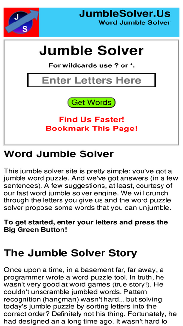 92%🔓 unlock the fastest jumble solving experience with our 🛠️ user-friendly tool, designed for ⚡ speed and 🎯 accuracy. 📰 tackle challenging newspaper puzzles, 🎮 level up in word-based video games, or 📖 enhance your educational journey with worksheets. our solver is your 🥇 go-to solution for all word-scrambling needs. 🌟 don't miss out—try it today and 👀 see the difference!