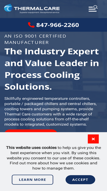 87%Thermal Care is a leading manufacturer of industrial water chillers & process cooling equipment and systems for applications worldwide. ISO 9001 certified.