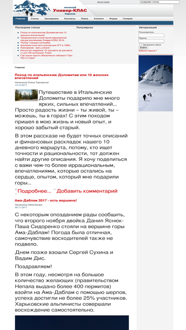 82%на нашем сайте вы найдете информацию об альпинистском сообществе в харькове, в том числе узнаете расписание тренировок, сможете прочитать интересные рассказы альпинистов, посмотреть фото с восхождений, пообщаться в форуме и др. - univer-clas.com