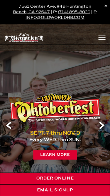 69%Oktoberfest Food & Drinks menu is served during Old World's Oktoberfest celebration from September 8th thru November 3rd.