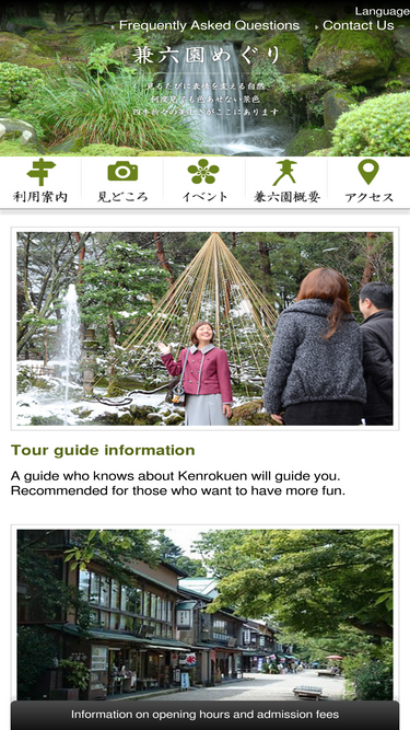 74%Kenrokuen holds guided tours that depart on time every day. You can feel free to participate alone or in small groups whenever you like. Please enjoy the homely information. Tour reservations are also accepted online.