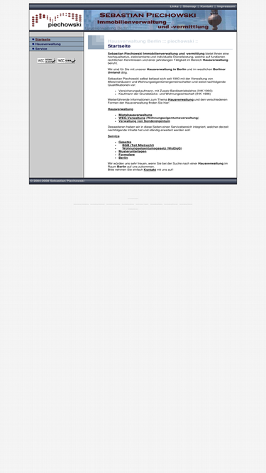 83%die website www.hausverwaltung-piechowski-berlin.de [hausverwaltung berlin] ist die offizielle internetpräsenz der sebastian piechowski immobilienverwaltung und -vermittlung und dient der information von eigentümern, mietern und interessenten, sowie der kontaktaufnahme.