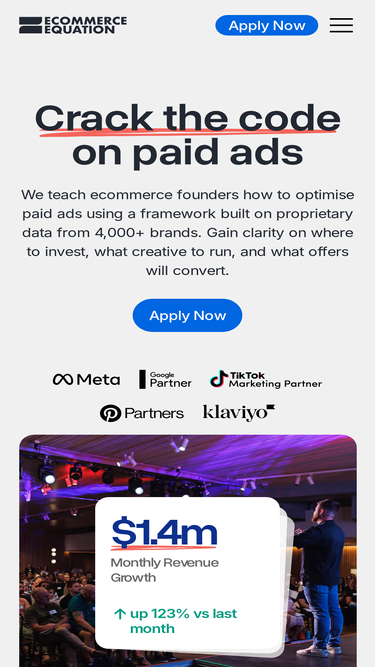 76%Ecommerce Equation generates a $1M/mo brand every 60 days. We've helped over 800 brands scale their ecommerce business. Find out more.