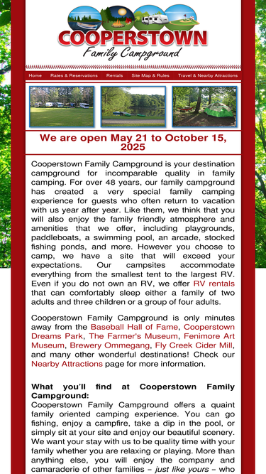 100%cooperstown family campground is your destination campground for incomparable quality in family camping. located in cooperstown new york, cooperstown family campground offers camping, fishing and nature walks with a full range of amenities.