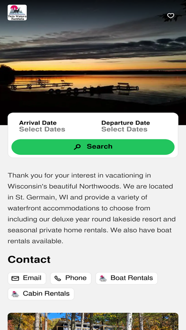 Thank you for your interest in vacationing in Wisconsin's beautiful Northwoods. We are located in St. Germain, WI and provide a variety of waterfront accommo...