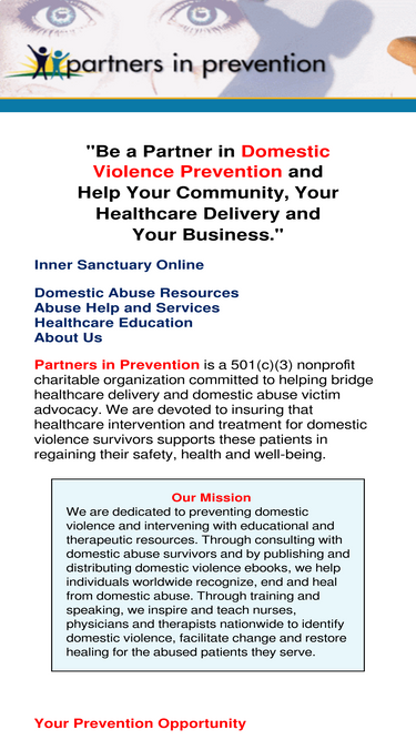 partners in prevention offers highly-polished continuing medical and nursing educational programs on domestic abuse assessment and clinical management training, giving health care providers skills to identify and aid patients who are victims of domestic violence.