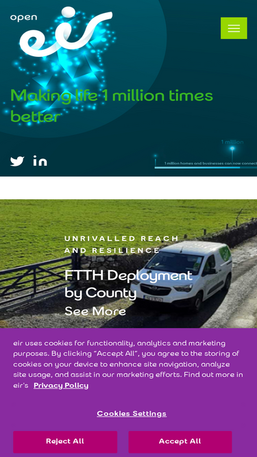 89%Open Eir are Ireland's largest supplier of Wholesale broadband, data facilities, voice, international and managed services communication services.