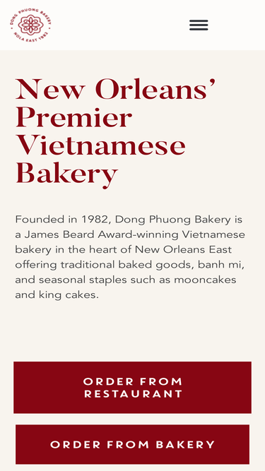 88%Founded in 1982, Dong Phuong Bakery is a James Beard Award-winning Vietnamese bakery in the heart of New Orleans East offering traditional baked goods, banh mi, and seasonal staples such as mooncakes and king cakes. Now shipping our banh mi sandwiches nationwide on Goldbelly—straight from New Orleans to your door. Guaranteed to arrive fresh.