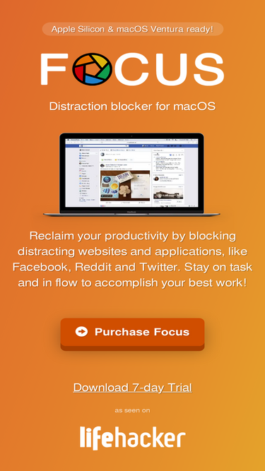 Unplug from the distracting side of the internet. Focus on what you opened your Mac for. Focus Firewall keeps you away from X, Instagram, YouTube, Reddit, TikTok, and more.