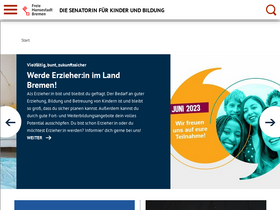 87%die senatorin für kinder und bildung der freien hansestadt bremen ist als bildungssenatorin für den bereich bildung als oberste landesbehörde zuständig und stellt damit das bildungsministerium des landes bremen dar. gemeinsam mit unseren fachleuten in den bereichen unterricht, erziehung und verwaltung tragen wir verantwortung für eine der zukunftsträchtigsten aufgaben unserer gesellschaft: wir gestalten gute bildung von anfang an und sorgen dafür, dass die menschen im land bremen vom ersten lebensjahr bis zum erwachsenenalter die bestmöglichsten chancen erhalten.