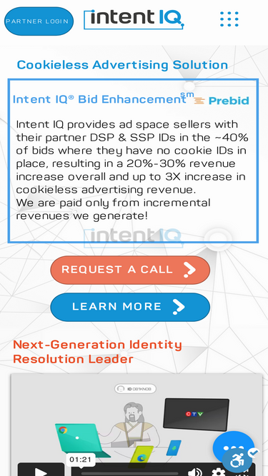 100%Powered by Intent IQ ID (‘IIQ ID’) Bid Enhancement Leveraging the power of Prebid EIDs Intent IQ’s Bid Enhancement for cookieless monetization: Providing a new stream of revenue for publishers, video platforms, exchanges, and CTV & Mobile Apps inventory. Addressability and measurement at scale – privacy by design. REQUEST A CALL READ MORE Addressability At Scale Accuracy of 90%+ with