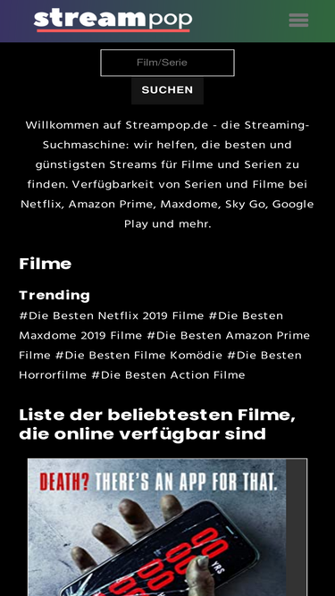 43%Stream Verfügbarkeit von Serien und Filme bei Netflix, Amazon Prime, Maxdome und mehr deutsche Streamingdienste. Die deutsche Streaming Suchmaschine für Filme und Serien.
