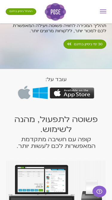 77%קופה חכמה מושלמת לעסק שלכם. Pose היא קופה ממוחשבת חכמה אשר הופכת את תהליך המכירה לחוויה פשוטה ויעילה המאפשרת לכם למכור יותר, ללקוחות מרוצים יותר.