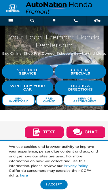 92%autonation honda fremont is your local bay area honda dealer. browse our new and pre-owned inventory, schedule service, and more!