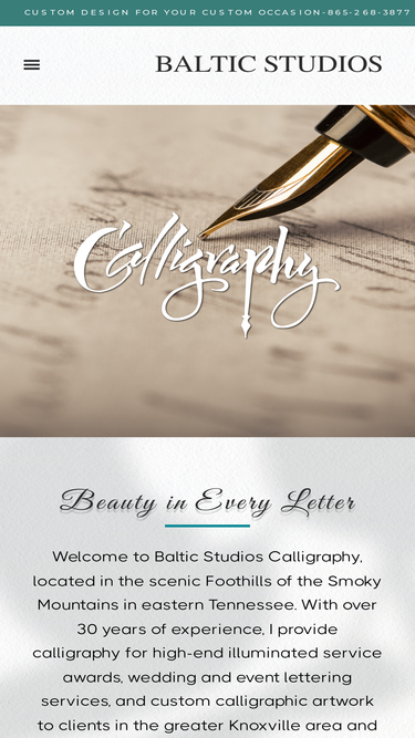 Providing Calligraphy Business Awards, Custom Calligraphy for Certificate, and Recognition Documents throughout East Tennessee including Nashville and Knoxville.