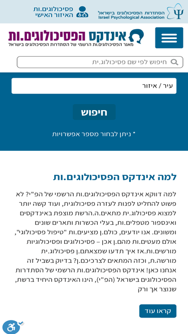 100%אז זהו, החלטת לפנות לפסיכולוג.ית. אבל מה עכשיו? איך בוחרים את הפסיכולוג.ית המתאימ.ה? יש בארץ אלפי פסיכולוגים, ואין שני פסיכולוגים זהים. קיימים סוגי מומחיות שונים, פסיכולוגים עוסקים בתחומים רבים, משתמשים בטכניקות שונות ומגוונות. מגיעים מכל קצוות האוכלוסייה במדינת ישראל, בגילאים ודרגות וותק שונות, טווח מחירים, מיקומים וכו' וכו' וכו'. אז איך נוכל למצוא את הפסיכולוג.ית שמתאימ.ה לך? התשובה היא בזהירות, צעד צעד, ועל ידי בירור המאפיינים שחשובים לך. וזו בדיוק המטרה של האינדקס שלנו. צעד ראשון- מתחילים עם השאלות הגדולות: מי- עבור מי הפניה? עבור עצמך? עבור ילד? הורה? זוג או משפחה? אולי בכלל עבור ארגון או חברה? מה- מה השירות המבוקש?
