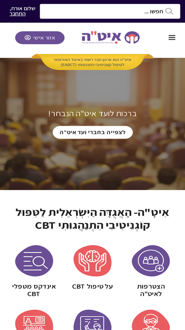 87%יש לכם שאלה בנוגע לאיט"ה- האגודה הישראלית לטיפול קוגניטיבי התנהגותי CBT? הגעתם למקום הנכון! שאלות בנוגע לחברות, לימודי CBT, חיפוש מטפל CBT