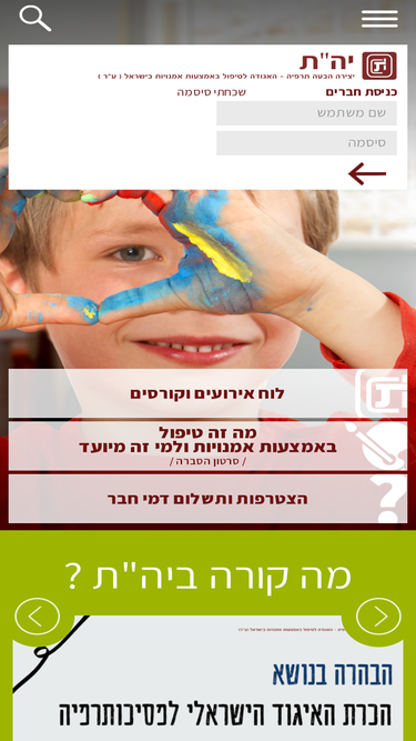 92%האתר הרשמי של האגודה המיצגת את המטפלים העוסקים במקצוע הטיפול באמצעות אמנויות בישראל. האגודה פועלת להנחיל אמות מידה מקצועיות ואיכותיות לעוסקים בטיפול...