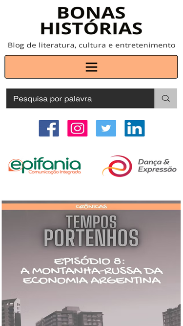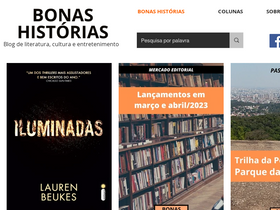 71%Bonas Histórias é o blog de literatura, cultura e entretenimento desenvolvido por Ricardo Bonacorci desde 2014. Com um conteúdo multicultural (literatura, cinema, música, teatro, exposição e gastronomia), Bonas Histórias analisa as boas histórias do Brasil e do mundo. Confira o blog: bonashistorias.