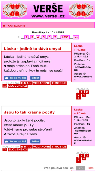 73%verše - 15756 básniček | zamilované, vtipné, smutné, milostné básničky, poezie, básně o lásce, o přátelství, o životě