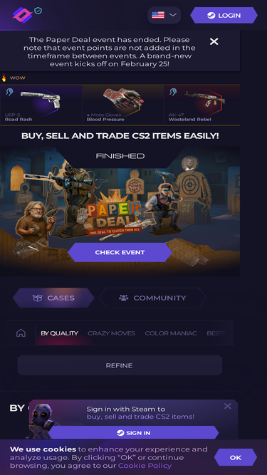 78%CS.MONEY is the best CS:GO/CS2 Trading Site, that lets you exchange, buy, sell skins safely. You can trade CS:GO/CS2 skins and items with our trading bots easily