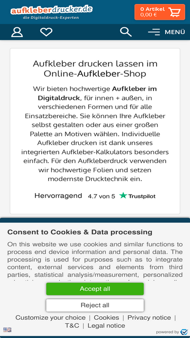 86%✓ der aufkleberspezialist ✓ aufkleber online bestellen ✓ hochwertige aufkleber zu kleinen preisen ✓ individuelle aufkleber ✓ gratis versand ✓
