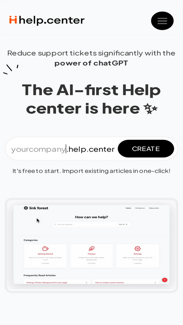 Help.center is a full-fledged customer support knowledge base solution powered with chatGPT to help customers get instant answers. You can have yourcompany.help.center website where customers can use AI search and also deploy an AI chat widget to your website to support customers in a conversational way. Deliver instant answers to customer questions using AI and boost customer satisfaction. Add an AI chatbot to your website and create a self-service doumentation portal.