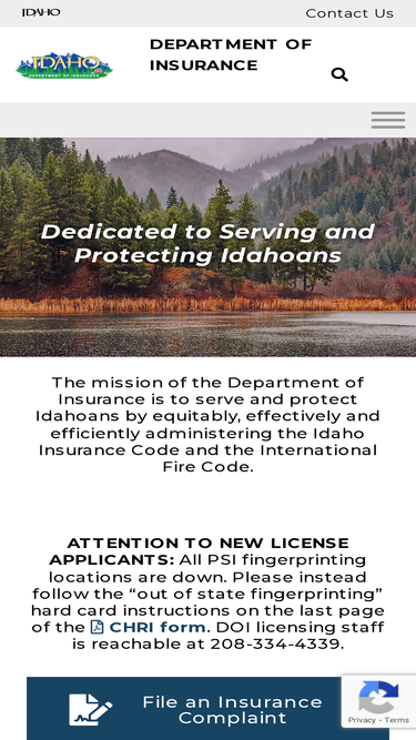 100%Idaho Department of Insurance serves and protects Idahoans by equitably, effectively and efficiently administering the Idaho Insurance and Fire Code.
