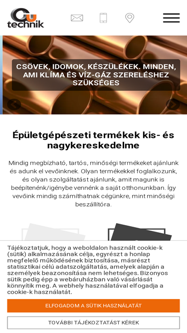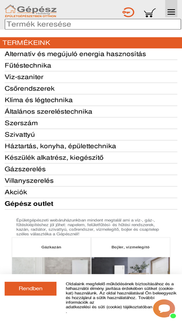 98%Nálunk mindent egy helyen megtalál épületgépészeti szereléshez víz, gáz, fűtés és klíma részére! Vörös rézcső, szénacél cső, ötrétegű cső, idomok, csőszigetelés, forraszpálcák, kazánok, radiátorok, szerszámok és épületgépészeti segédanyagok nagy választékban!