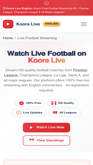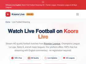 74%Watch live football matches in HD on Koora Live. Free streaming of Premier League, Champions League, La Liga and more. Koora Live English - Your #1 football streaming destination.