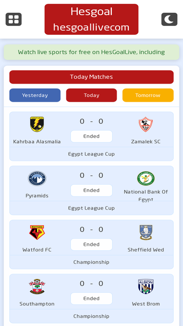 66%Hesgoal TV - Live Streaming - Today's Matches