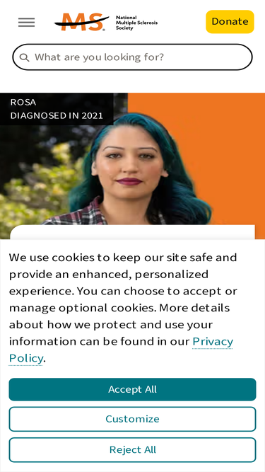 99%The National Multiple Sclerosis Society exists because there are people with MS. Our vision is a world free of MS.