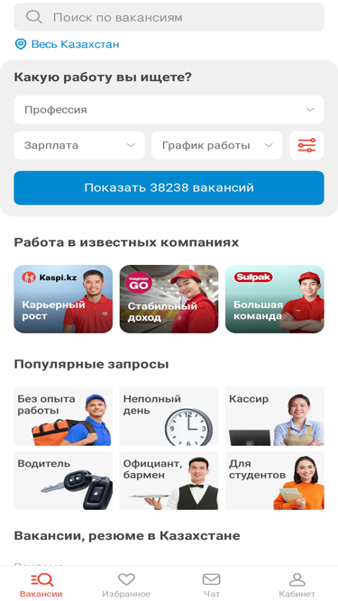 97%поиск работы среди вакансий всех ведущих компаний и порталов по трудоустройству в казахстане и за рубежом