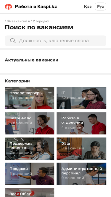 86%job.kaspi.kz — сервис, который помогает найти работу! В команду ищет профессионалов, которые ценят открытость и свободу и стремятся менять мир к лучшему. Вам это близко? Откликайтесь на вакансии.