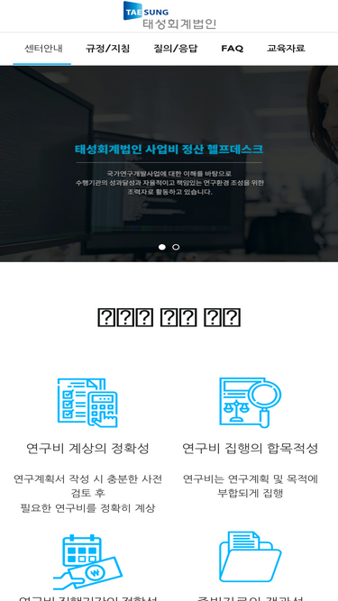 85%태성회계법인 사업비 정산 헬프데스크: 연구개발기관을 위한 맞춤형 정산 서비스. 국가연구개발사업 규정 지침, 정산 설명회 동영상, FAQ 등 체계적인 콘텐츠로 연구비 정산의 어려움을 덜어드립니다.