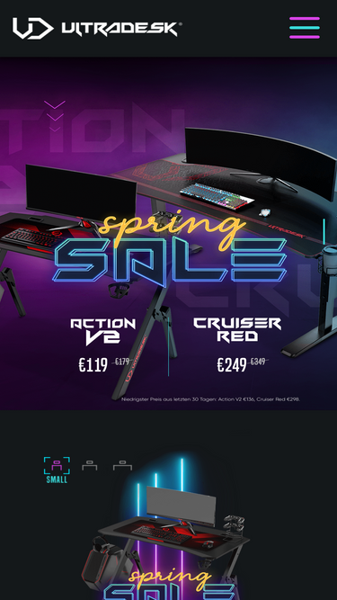 87%Neuestes Design von Ultradesk. Großer Ecktisch für Gaming und andere Aufgaben am Computer. Elektrische Höhenverstellung und LED RGB Beleuchtung inklusive.