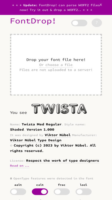 74%Simple and easy way to view the content of font files.
