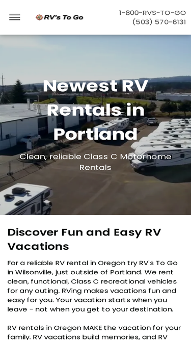 94%RVs To Go offers RV Rentals and Sales just outside Portland, Oregon (in Wilsonville). We rent the newest RVs (Class C Motorhomes) for you to vacation in style.
