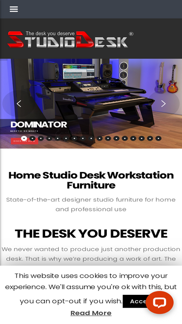 89%Welcome to StudioDesk® – Where Function Meets Design Discover state-of-the-art studio workstations, crafted for both home and professional use. Join over 20,000 producers worldwide who trust StudioDesk® for their creative space. Explore our website to find the perfect desk for your studio setup.