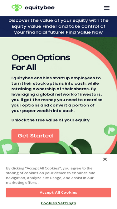 86%EquityBee helps startup employees get the money they need to exercise their stock options before they expire.