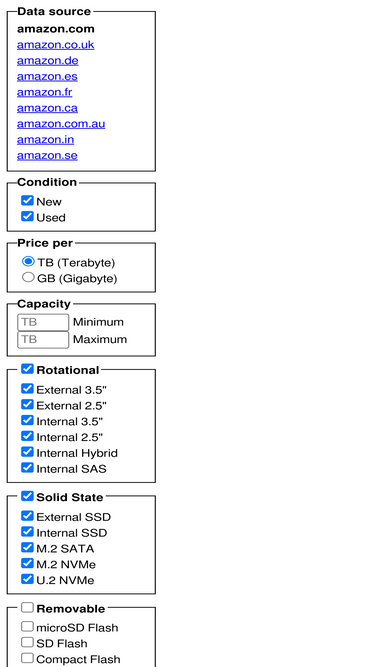 76%comparison of all hard drives and ssds on amazon, sorted by price per tb