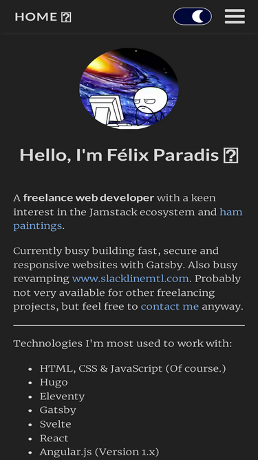 Freelance web developer Félix Paradis's personal blog! Mostly about web developement and weird ergonomic keyboards.