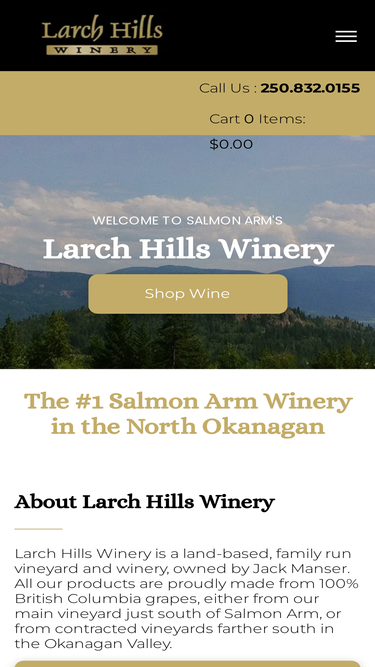 100%Larch Hills Winery is a family run vineyard & winery. Our wines are made from 100% BC grapes, from our vineyard in Salmon Arm, or south in the Okanagan Valley