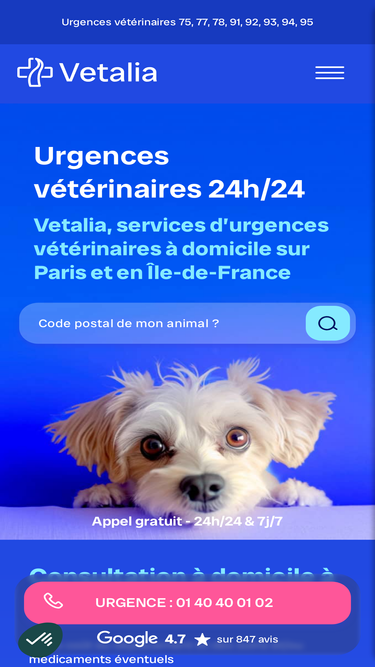 74%Appelez-nous pour toute urgence vétérinaire dans le Val d'Oise (95) 📞 Nos vétérinaires de garde interviennent à votre domicile en moins d’1 heure ✅ 24h/24 7j/7 !