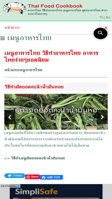 รวมเรื่องน่ารู้เกี่ยวกับอาหารไทย เมนูอาหารไทย สูตรอาหาร เมนูอาหารที่จัดแยกตาม ประเภทอาหาร ต้ม ผัด แกง ทอด และจากวัตถุดิบ ทั้ง เมนูหมู เมนูเป็ด เมนูไก่ เมนูไข่ เมนูกุ้ง เมนูปลา เมนูอาหารทะเล รวมเคล็ดลับการทำอาหารให้อร่อยมากมาย อีกทั้งบทความดีๆ สาระน่ารู้ เกียวกับอาหาร สมุนไพร สุขภาพ และอาหารลดความอ้วน : information about thaifood, thaifood recipes, thai cooking, thai cuisines, thai desserts, thai ingredients, thai herbs,