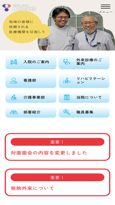 85%高知県安芸郡田野町にある、医療法人臼井会 田野病院公式サイトです。当院は急性期医療から慢性期医療、在宅復帰を支援する回復期リハビリテーション病棟を兼ね備えた地域で唯一の病院です。