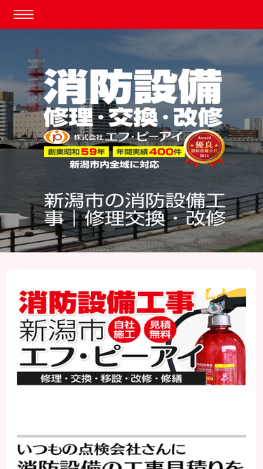 92%株式会社エフ・ピーアイは消防設備や機器の工事(修理・交換・移設・改修・修繕・設計・施工)を専門に行う新潟市の業者です。自社施工とメーカー直接仕入れにより適正価格での工事をご提供いたします【見積り無料|相見積り大歓迎】