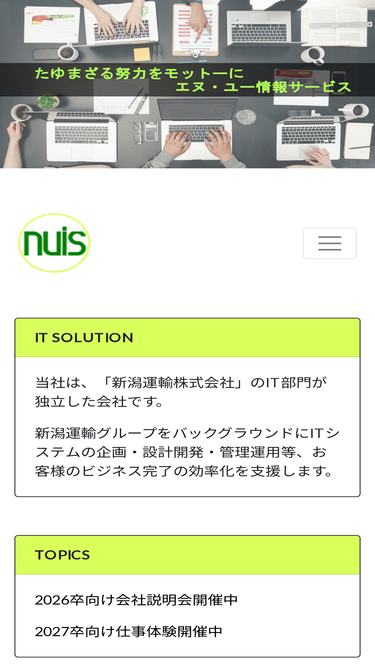 60%エヌ・ユー情報サービスは「新潟運輸株式会社」のit部門が独立した会社です。itシステムの企画・設計開発・管理運用等、お客様のビジネス環境の効率化を支援します。