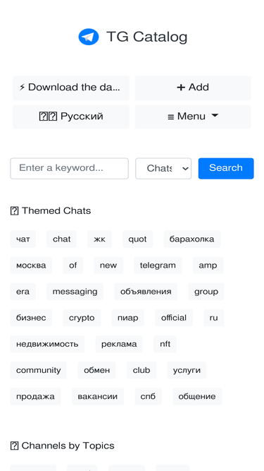 79%ежеминутно обновляемая база телегеграм чатов, каналов и ботов. умная разбивка по категориям. более 2 миллионов ссылок. переходи в телеграм каталог!