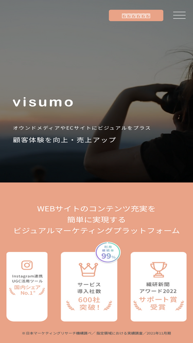83%株式会社visumoのIRページです。visumoは、ブランディングや商品訴求を強化するビジュアルデータを一元管理するビジュアルマーケティングプラットフォームを提供しています。